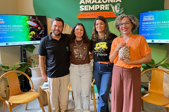 One of the highlights was the “Sementes do Amanhã” workshop, held at the Goeldi Museum. The event brought together the BJF Araguaia Seed Network, the Redário — an initiative of the Socio-Environmental Institute that connects seed networks across Brazil — and Sementes Paraíso. The central theme was the role of communities in ecological restoration. Diogo Ferraz e Castro presented the Black Jaguar Foundation’s work in the Araguaia Biodiversity Corridor, while Laís, BJF’s Community Engagement Coordinator, shared ongoing initiatives developed with the BJF Araguaia Seed Network groups. Other participants also contributed their experiences, enriching the exchange between different seed networks.
